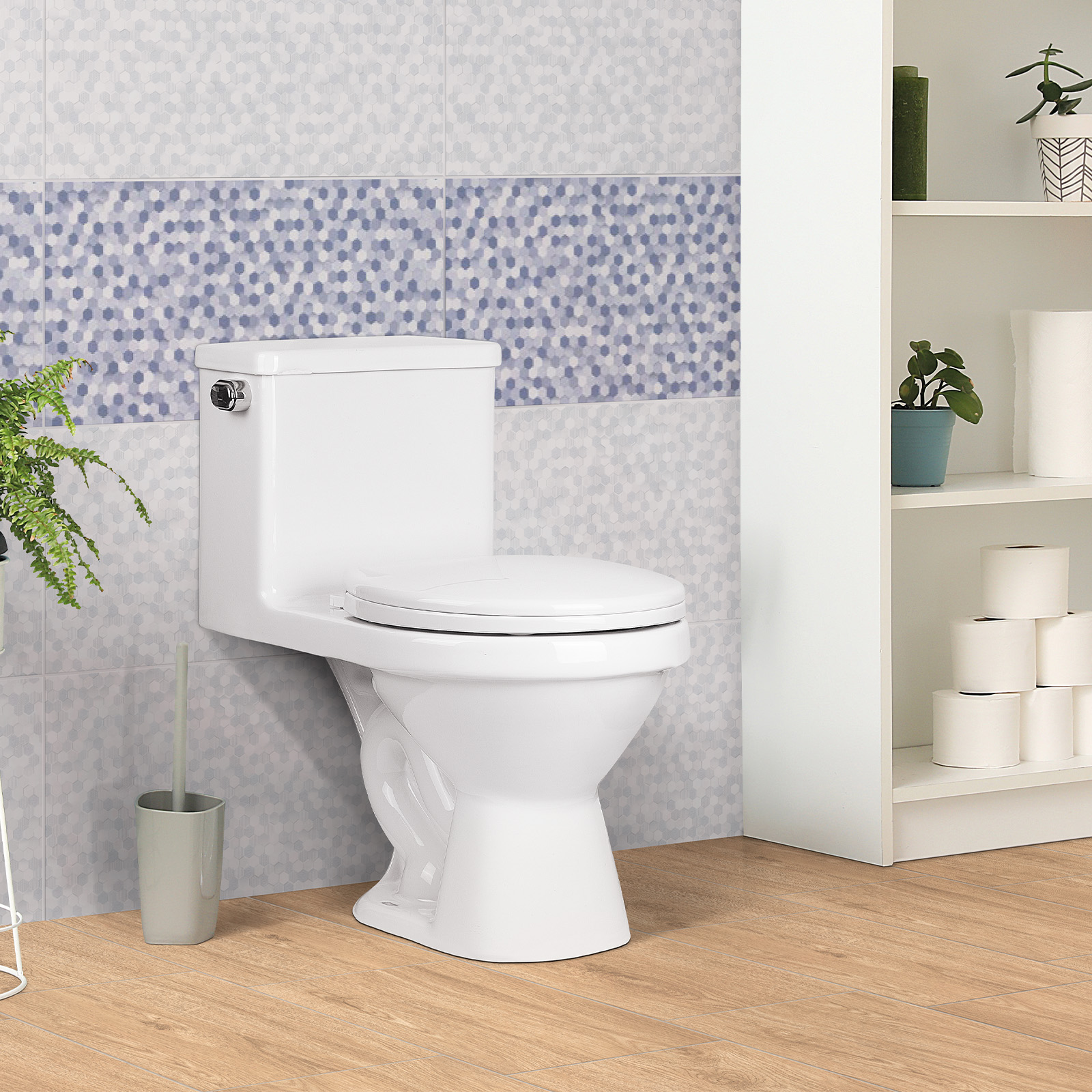 Sanitario ecológico de una sola pieza de aro redondo, de diseño moderno con perfiles amigables, cálido y acogedor ideal para los espacios de hoy.